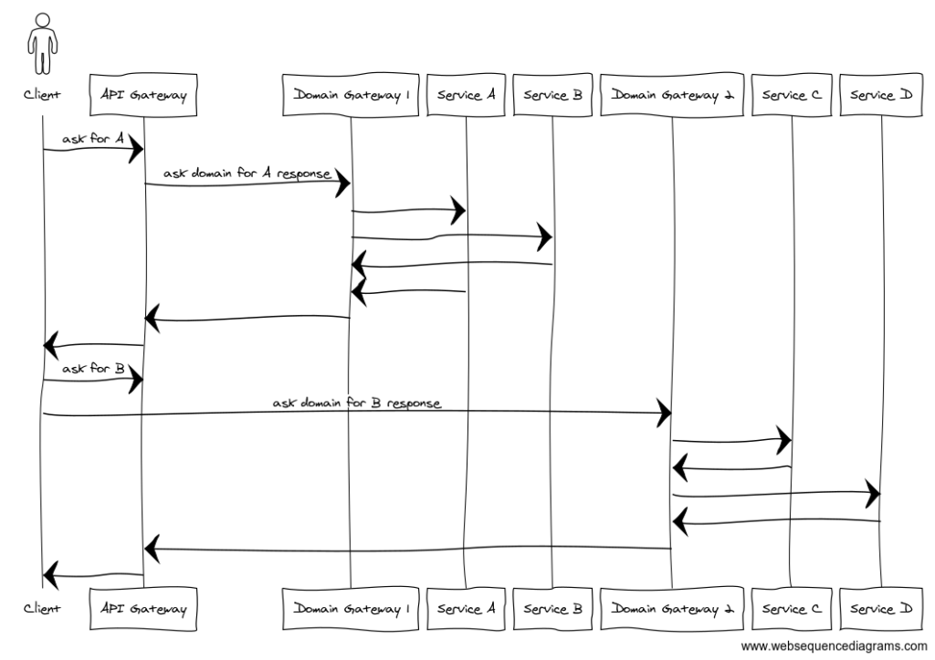 Note that a domain gateway doesn’t have to facade calls for the clients; it can proxy them if the API is simple enough.