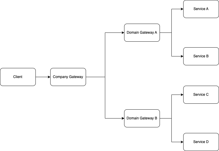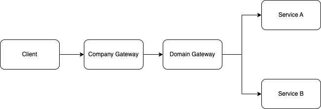 For simplicity, let’s assume that we have only two services in our domain. Each service serves a single endpoint that is unrelated to the other. The illustration below shows an example of how our client will integrate with our domain: