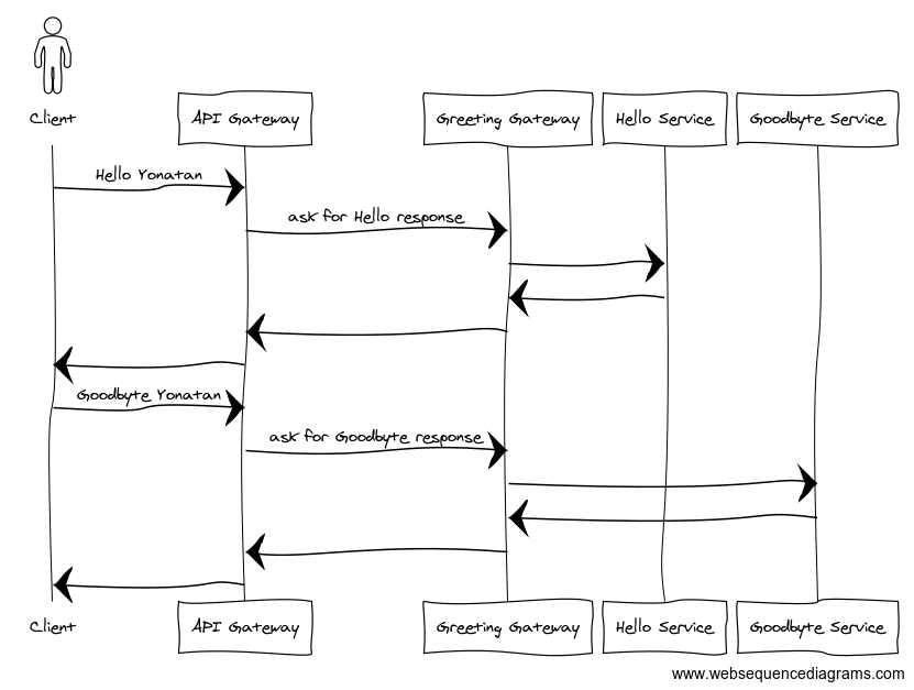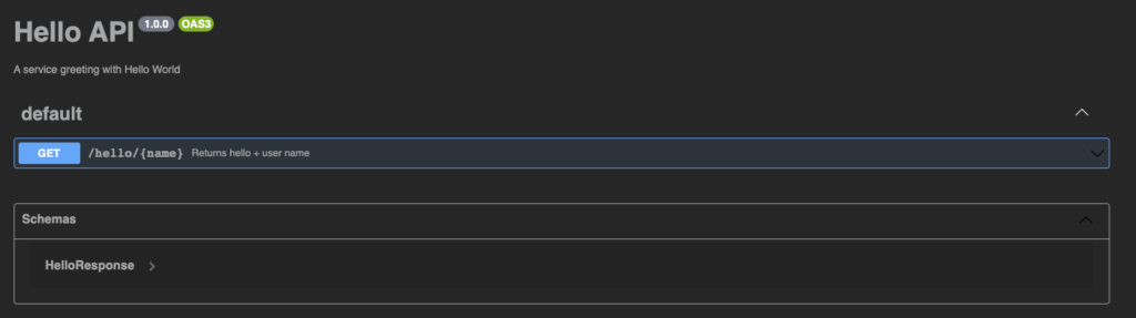 Our Hello API will expose a single endpoint: /hello/{name}. This endpoint will respond to the client with “Hello ” (e.g. “Hello Yonatan”).